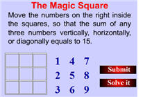 juego de cuadrado mágico tiene que colocar nueve números dados dentro de las células de un cuadrado, con el fin de obtener el mismo número, 15, al agregar los números en vertical, horizontal o diagonal.