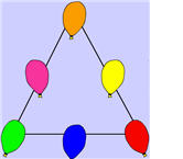 juego de lógica triángulo que son para colocar nueve números diferentes dentro de los seis globos propuestos, de modo que la suma en cada lado del triángulo es igual al mismo número dado.